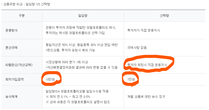 일임형 : 은행에게 돈에 대한 판단을 맡김